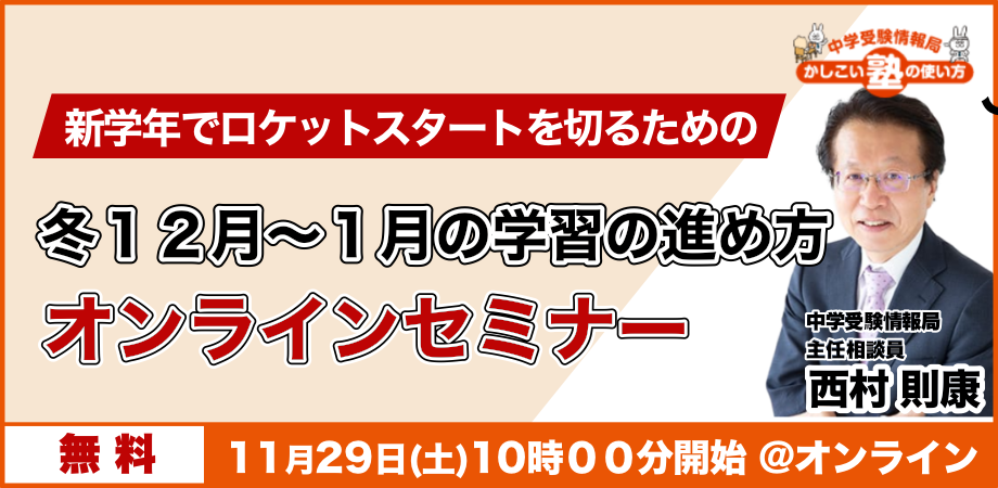 こんにちは、中学受験情報局・主任相談員の西村則康です。