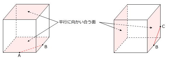 AB、BCを結ぶと「同じ面上の2点」がなくなります。