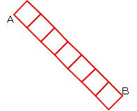 図のように、正方形の中に同じ大きさの16個の円がくっついて入っている。Aから円周上を通ってBへ行く最短コースは何通りあるか。ただし、AとBは正方形と円がくっついている点である。