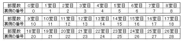 上の表の26室目「28」は、一の位が「8」、九の位が「2」ですから、