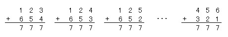 Bは大きい方から順に、654、653、652、651、…、421、321