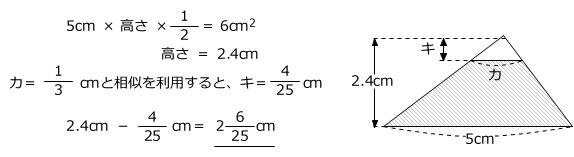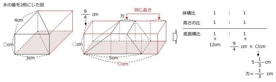 水の量を2倍にすると、どちらも直方体にでき、上の図のようにカの長さを求めることができます。