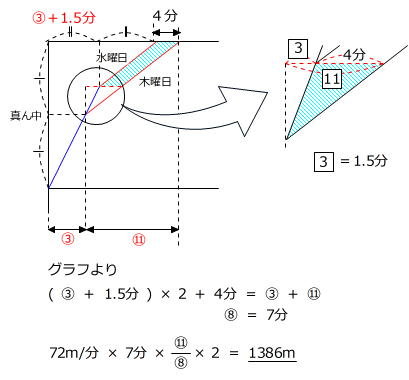 この問題は、線分図でもダイヤグラムでも解くことができますから、
