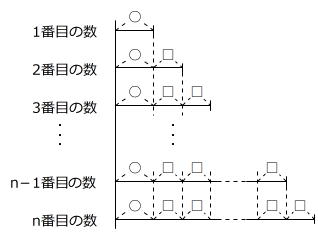 1番目の数を○、公差を□とすると、1番目からn番目までの数は次のような線分図に表すことができます。