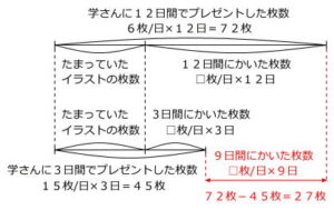 ⑫÷3=④/日 … 1日に減るイラストの枚数(下図)
