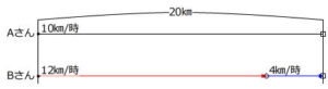 Bさんも20㎞を2時間で走ったことになりますので、つるかめ算が利用できます。