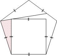 正方形と正五角形の各辺の長さは等しいので、影をつけた三角形は二等辺三角形です。
