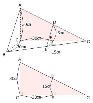 AC:DF=30㎝:15㎝=2:1=CG:FG