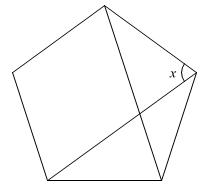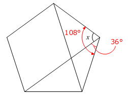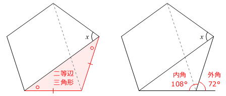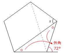 【問題】図のように、正五角形の対角線を2本引きました。角xの大きさは何度ですか。