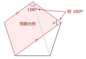 また、正五角形の中にある等脚台形に着目してもOKです。