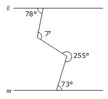 錯角を利用するため、次の図のように直線ℓ、mと平行な直線a、bを引きます。