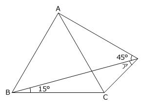 【問題】下の図の角アの大きさは何度ですか。ただし、三角形ABCは正三角形です。