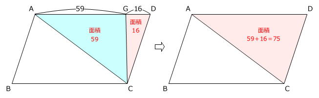 なので(右下図)、三角形GCDの面積は三角形ACDの面積の