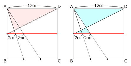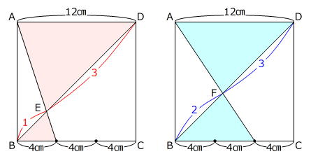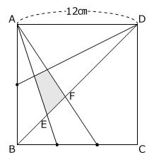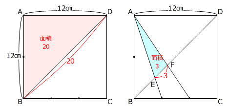12㎝×12㎝×1/2=72㎠ … 三角形ABDの面積