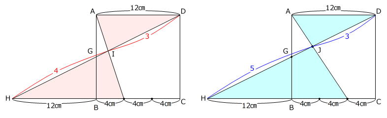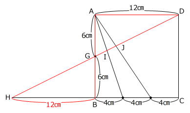 6㎝×12㎝×1/2=36㎠ … 三角形AGDの面積