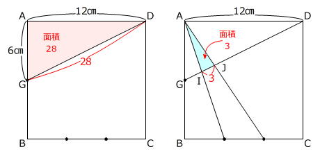 36㎠×3/28=27/7㎠=3 6/7㎠ … 三角形AIJの面積