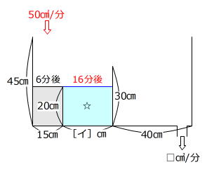 ☆㎠=20㎝×[イ]㎝=50㎠/分×(16-6)分 → イ=25