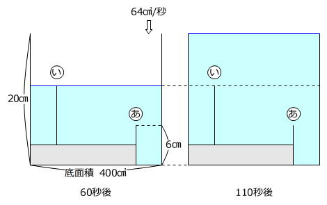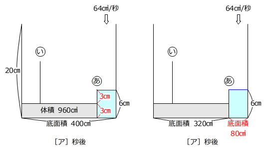 64㎤/秒×[ア]秒=80㎠×6㎝ → ア=7.5
