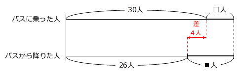 バスに乗った人数の合計とバスから降りた人数の合計は同じですから、□人と■人の差が