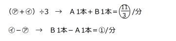 なお、解答例の他に、A(またはB)の本数をそろえるという消去方法でもOKです。