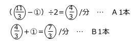A1本とB1本の排水量の和と差がわかりましたので、和差算の考え方で計算を進めます。