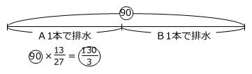 ですから、「満水のタンクからA1本で排水し、全体の13/27排水したところで、Aを閉じてB1本を開けて排水、タンクを空」は次のような線分図で表せます。