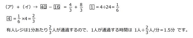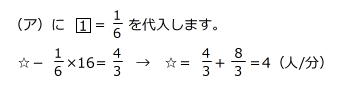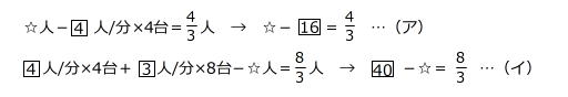 そこで、1分間に有人レジを通過する人数を4□人、セルフレジを通過する人数を3□、1分間に並ぶ客を☆人として、会計待ちの人数が1分あたりに増減する様子を式に表します。